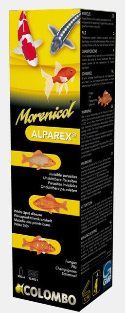Alparex is werkzaam tegen onzichtbare parasieten welke een grauwsluier op de vissen veroorzaken,zoals Ichtyobodo, Chilodinella en Trichodina. Bovendien worden schimmel en witte stip effectief behandeld.
