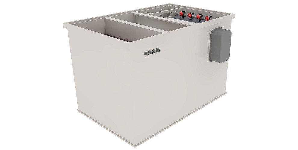 De 3 filterruimtes zijn respectievelijk voorzien van een drumfilter, een bewegend bedfilter en een kamer die naar wens is in te vullen met bijvoorbeeld filtermatten. Een interne spoelpomp, een ingebouwde uvc-unit, luchtbuizen en de 2 jaar garantie (muv zeefpanelen en UVC vervangonderdelen) maken deze topper compleet.
