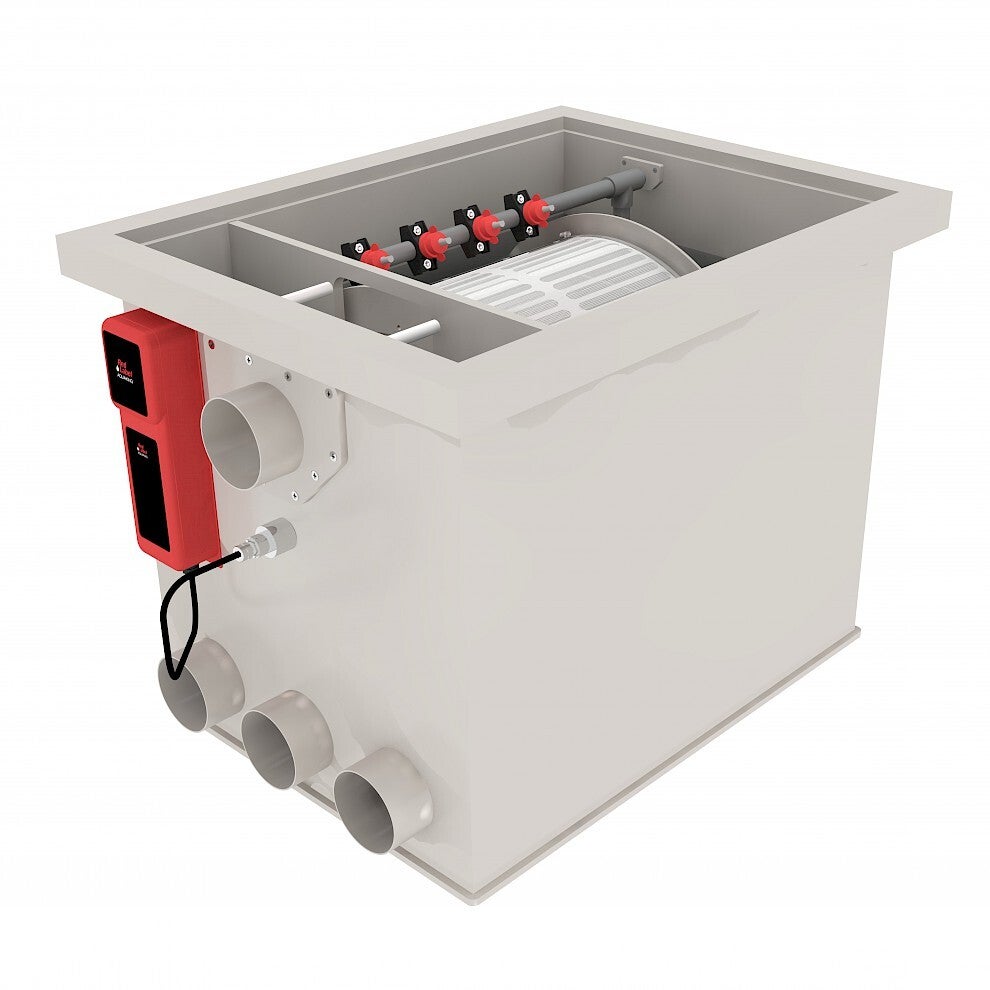Red Label BASIC serie biedt een hoogwaardig en zeer compleet filtersysteem tegen de best mogelijke prijs. Deze Red Label filters zijn standaard voorzien van een aantal unieke extra’s. Zo is de serie uitgerust met een ingebouwde spoelpomp. Dit resulteert in minder geluidsoverlast, een kleinere inbouwruimte en efficiënter functioneren van het drumfilter. Het filter is standaard voorzien van een inbouw UVC unit met een 40 Watt INOX lamp. Deze unit draagt zorg voor kraakhelder vijverwater door het vernietigen van algen, bacteriën en schimmels. Hiermee kan UV apparatuur in uw leidingsysteem komen te vervallen wat een optimale doorstroming bevordert. Het BASIC Drum filter 20/25 is ontworpen om vijvers tot een inhoud van maar liefst 40m3 te ontdoen van vervuiling.